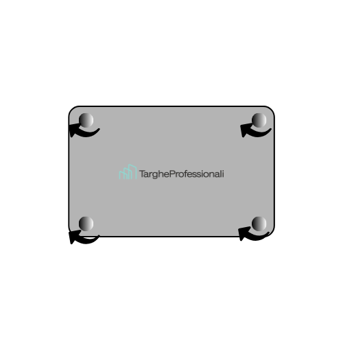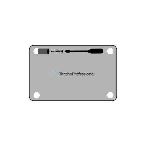 Targa in plexiglass con fori già predisposti: Le targhe in plexiglass vengono fornite, nella maggior parte dei casi, con fori già predisposti agli angoli. Questo consente di fissarle in maniera stabile utilizzando distanziali e viti.