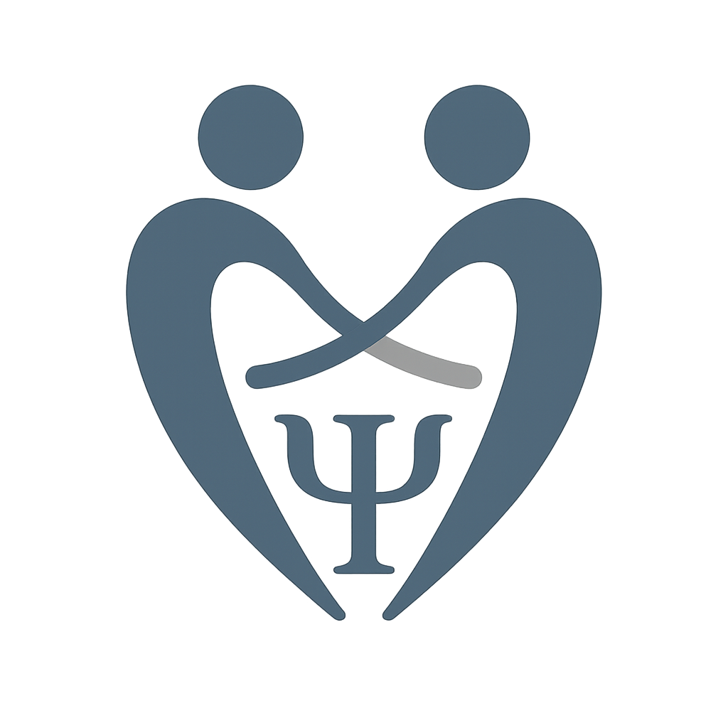 Segni relazionali: due forme che si avvicinano e creano uno spazio comune; linee che si intrecciano e poi si sciolgono. Palette tranquille (blu/grigi caldi). Monogramma con ψ integrata come “ponte” tra iniziali.