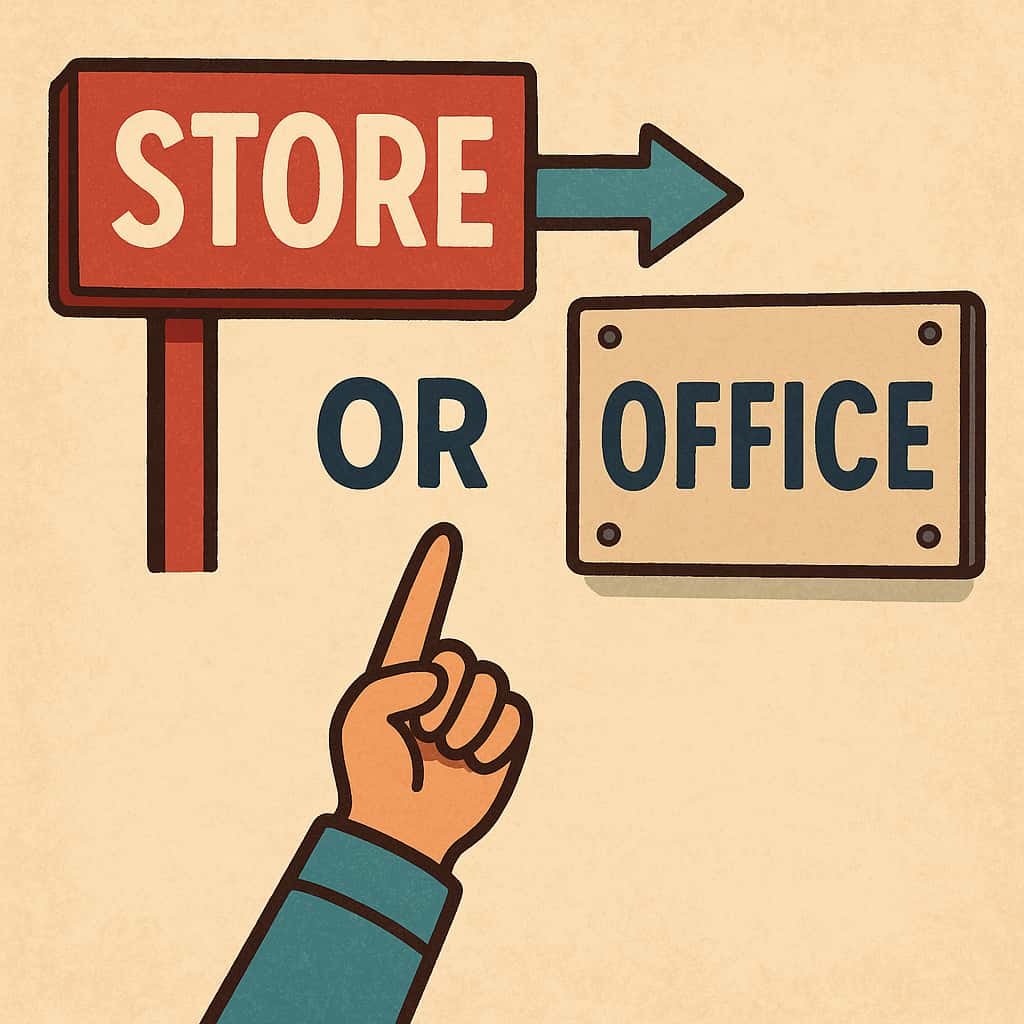 Per negozi e servizi retail l’insegna è lo standard: serve a farsi riconoscere a distanza e a comunicare brand/ingresso. Spesso è ammessa la replica con targa informativa a lato porta (orari, ingressi, accessi secondari). Verifica superficie massima, sporgenze, eventuale illuminazione e materiali coerenti con il piano del decoro urbano.