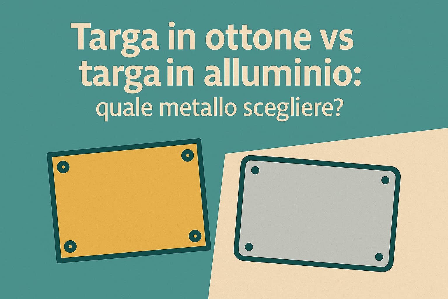 Costi: in generale l’ottone ha un costo materiale e di finitura più elevato; l’alluminio è spesso più economico a parità di formato/spessore. Incidono sul prezzo finale: lavorazione (stampa UV, incisione), finitura (lucida/satinata), accessori (copriviti, basi, astucci), personalizzazioni multiple (nominativi).