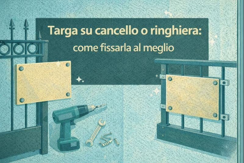 In aree ventose o su cancelli molto utilizzati, integra rondelle in nylon lato targa e controdadi autobloccanti. Se l’uso è temporaneo (eventi/aperture straordinarie), valuta magneti gommati ad alta tenuta da rimuovere a fine giornata.