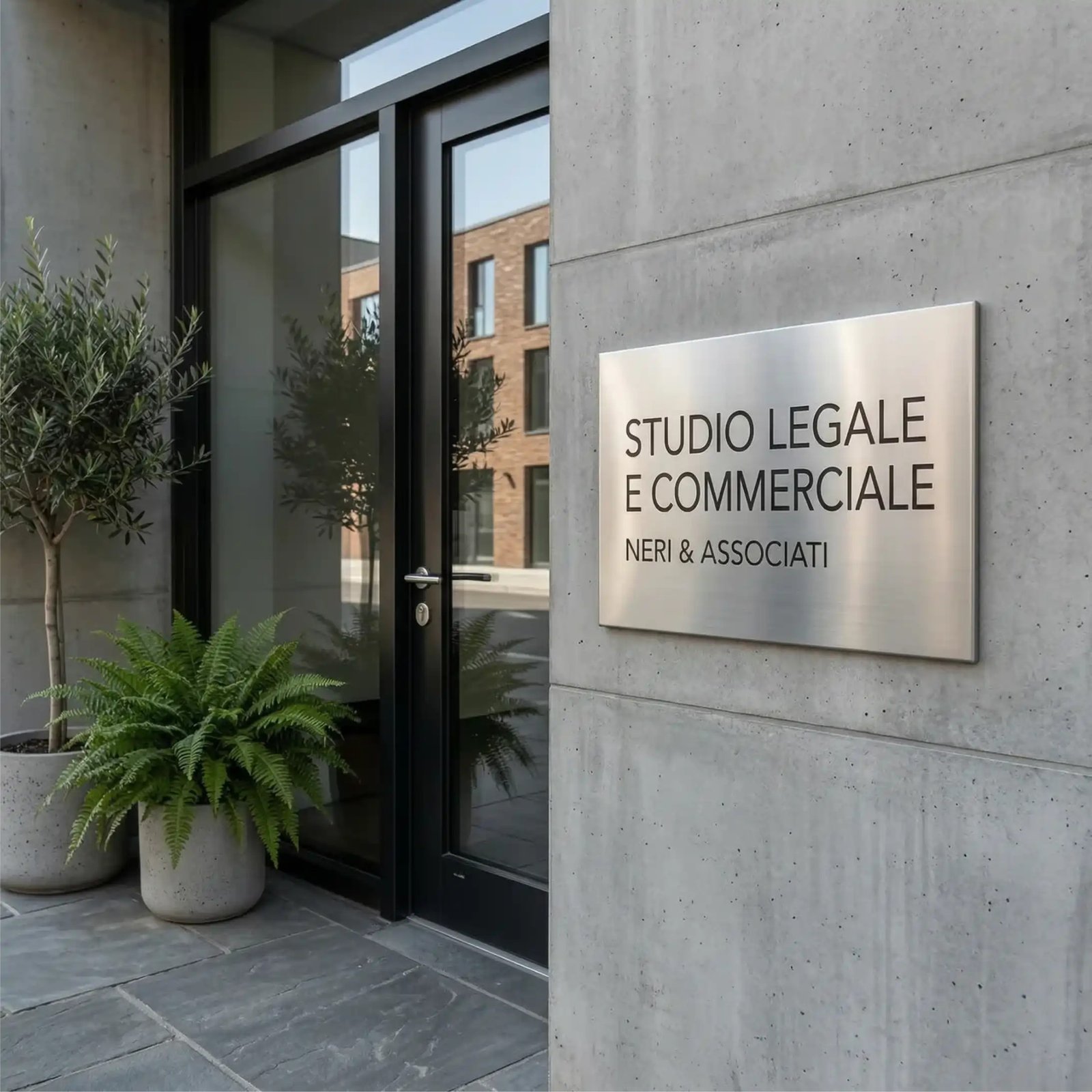 Con la sua superficie satinata e verniciata, questa targa in alluminio unisce raffinatezza e resistenza, perfetta per spazi professionali e residenziali.