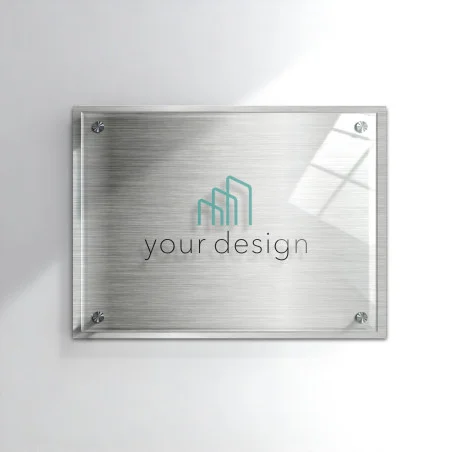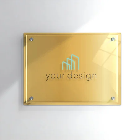 Targhe in plexiglass e dibond oro spazzolato con stampa sul retro: l’unione perfetta tra eleganza e resistenza per una comunicazione di impatto, Completamente personalizzabili, ideali per valorizzare ambienti professionali con stile e prestigio.
