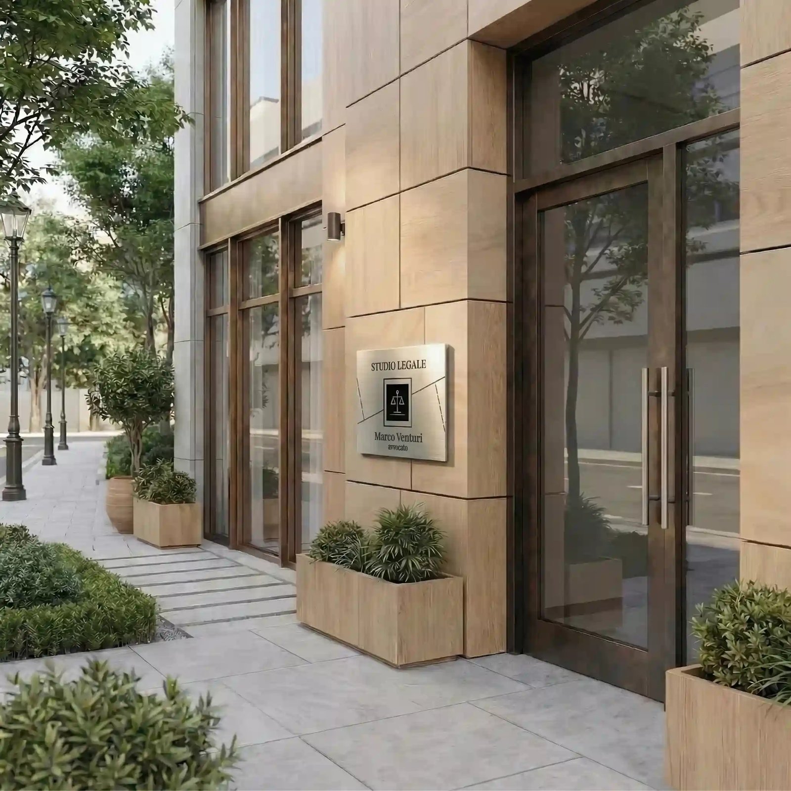 La scelta di una targa studio legale moderna con finitura satinata verniciata è una scelta di posizionamento. Chi la fa sa che l'ingresso del proprio studio non è un elemento secondario: è la prima dichiarazione di come si lavora, di quanto si cura ogni aspetto della propria immagine professionale. La Aurea è progettata per rendere quella dichiarazione inequivocabile.