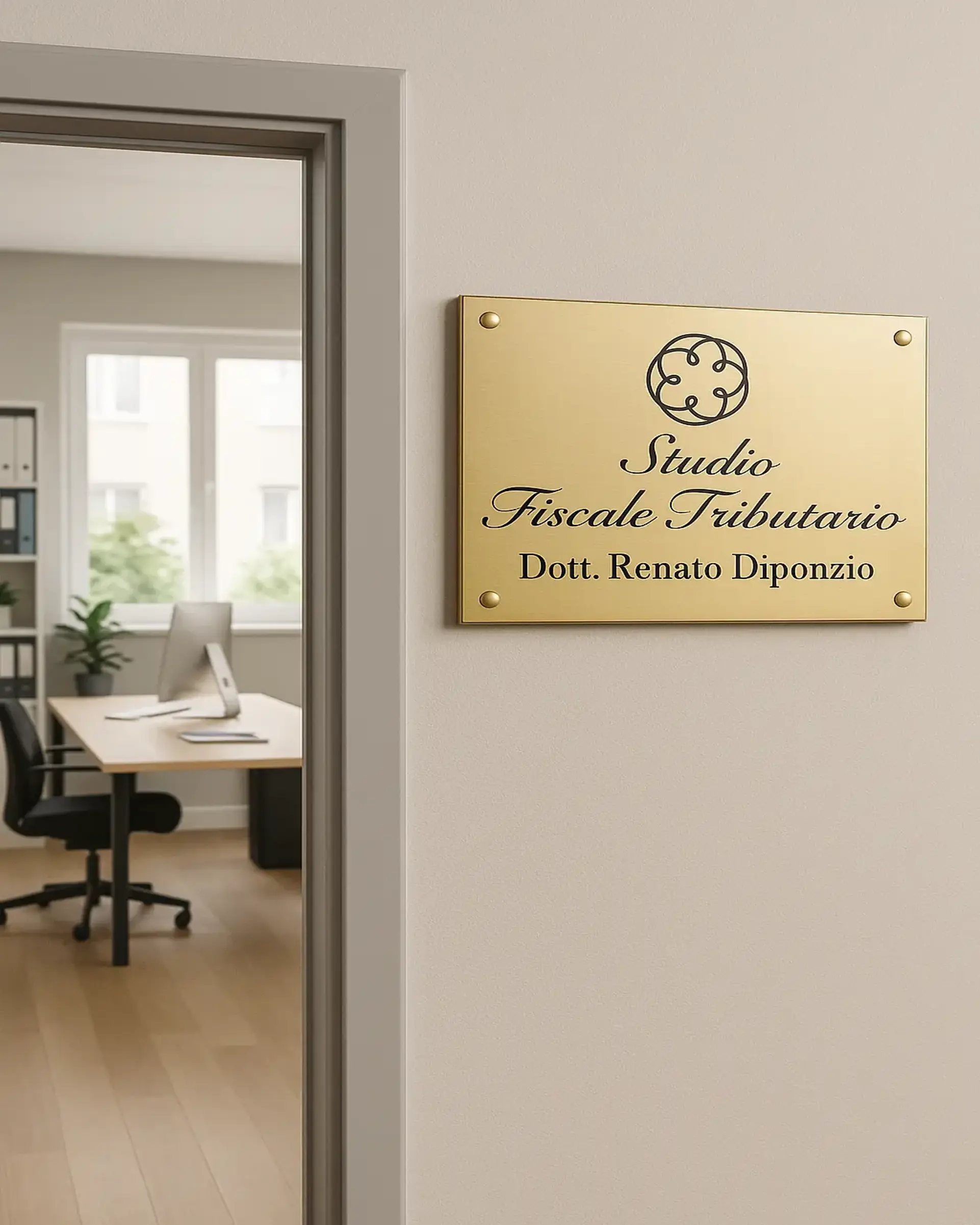 Materiali premium e personalizzazione completa: crea la targa che esprime al meglio la tua identità professionale.